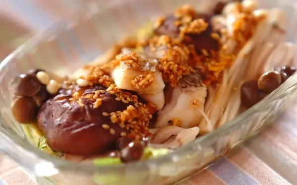 高たんぱく・低脂質な白身魚とキノコをたっぷり使った、ノンオイルでヘルシーな一品。食材を切ったらレンジでチンするだけなので、時間がないときでもパパッと作れますよ。