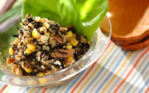 栄養価の高いスーパーフードのキヌアとヒジキを組み合わせた、最強ヘルシーサラダ! コーンやツナも入れて、食べやすくアレンジ。キヌアのプチプチ食感が楽しいです。和風テイストであっさりといただきましょう。